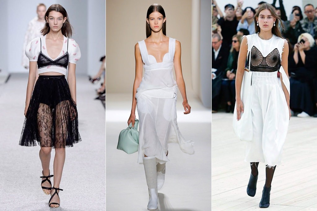 Una tendencia muy innovadora que llega con mucha fuerza: sujetadores y corsés por encima de la ropa o simplemente dejándolos a la vista. Debemos combinarlos con ropa sencilla para que pueda destacar la lencería.
